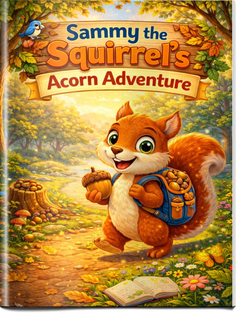 Sammy the Squirrel takes readers on a cozy forest adventure searching for acorns and exploring the woodland world.