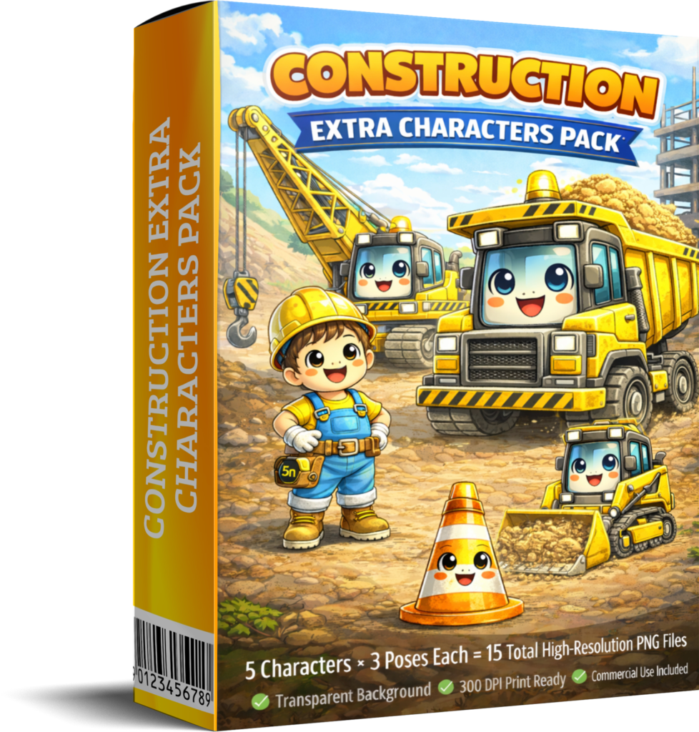 Strong, engaging construction-themed characters with varied poses designed to help you create energetic, vehicle-focused books that stand out to young readers who love trucks and action.